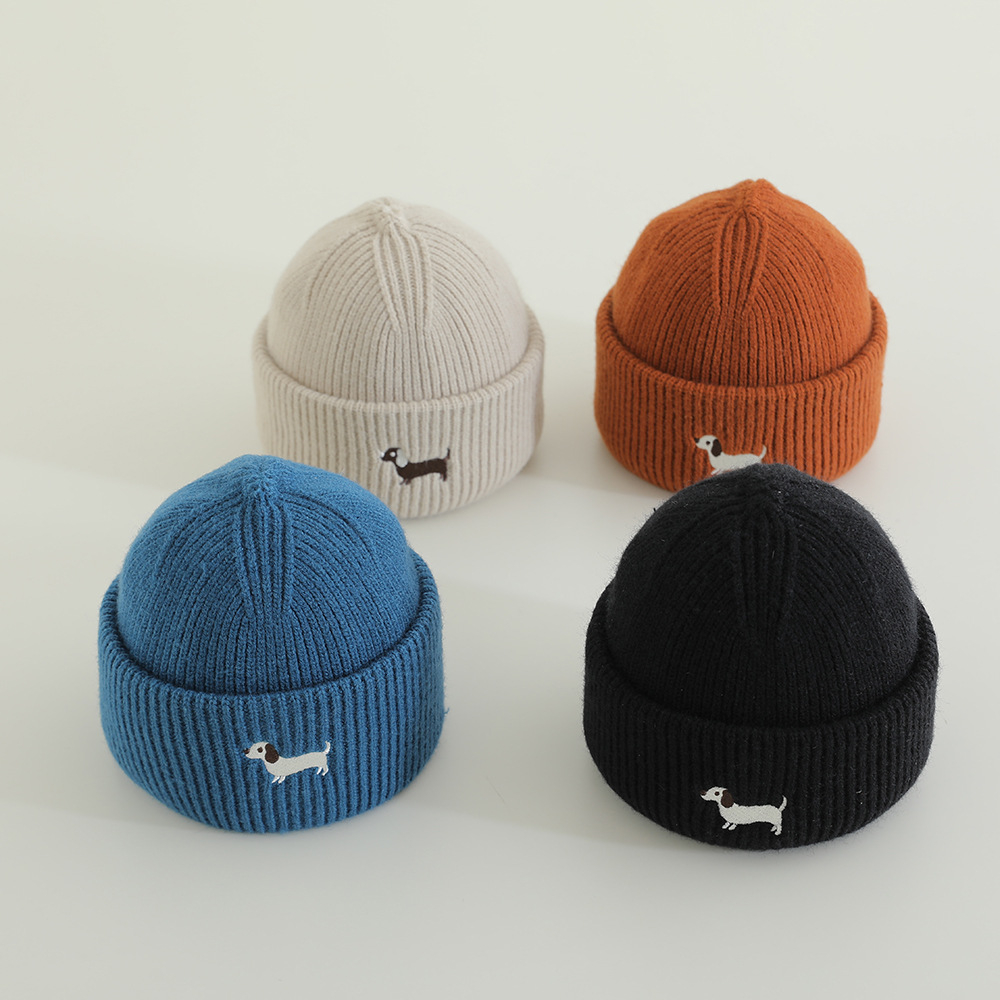 子供用毛糸帽子ins韓系刺繍犬かわいい洋気男の子女の子カジュアル保温プルオーバーニット帽