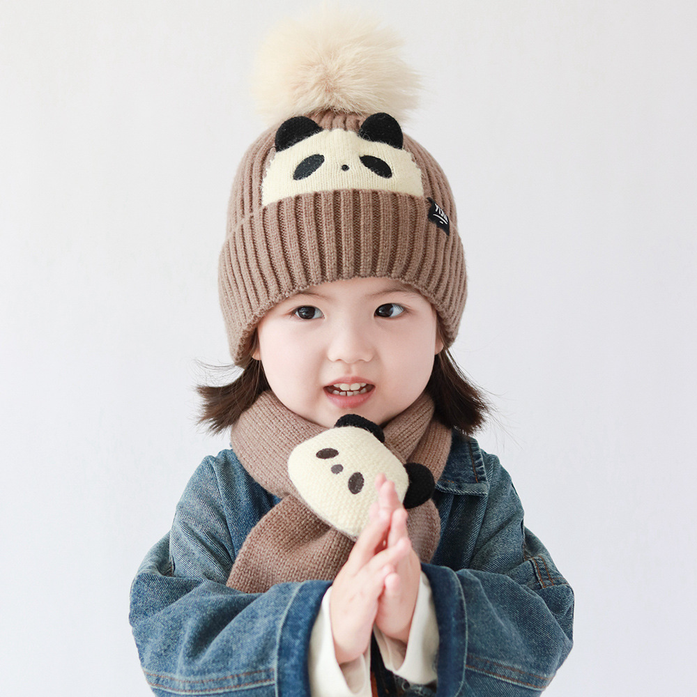 赤ちゃんの毛糸の帽子が可愛いです。秋冬帽子のマフラーセットのニット帽です。