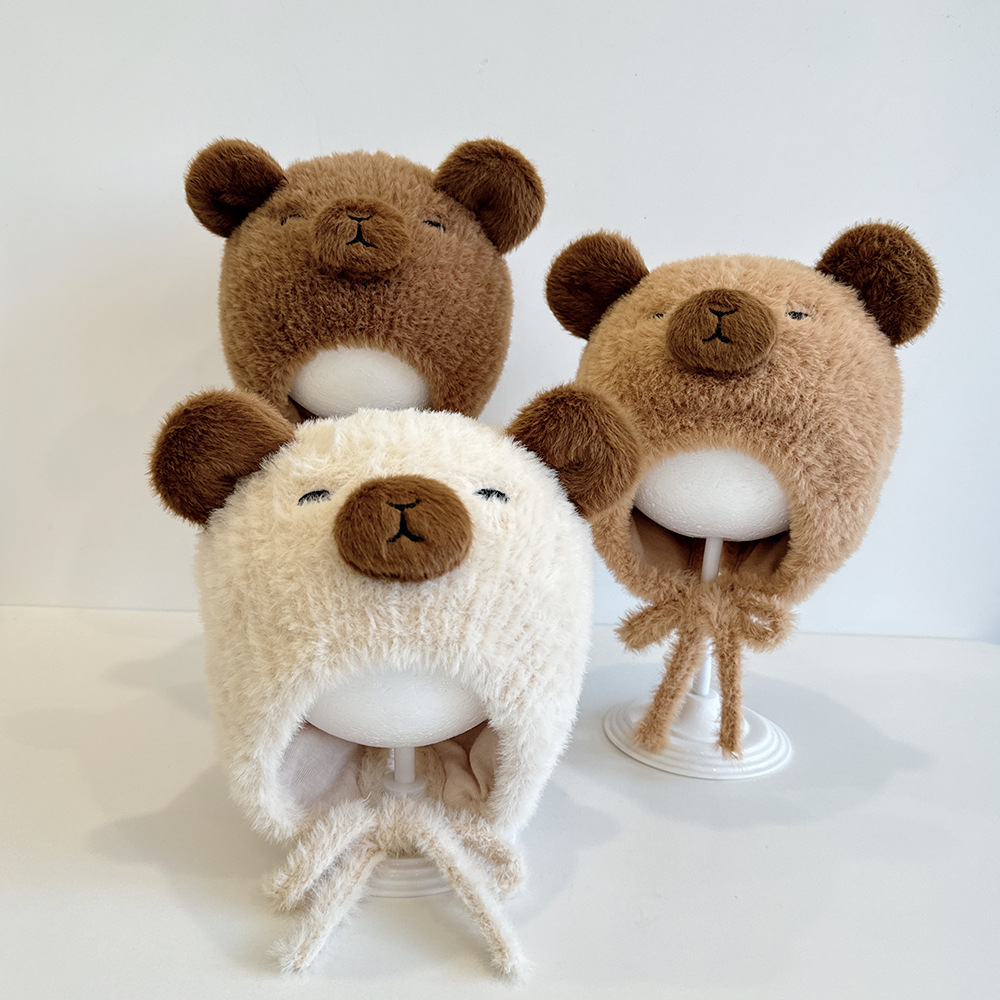 かわいい熊の子供の帽子の動物の漫画の毛の帽子の男の子の保温の耳の帽子の女の子の漫画のニットの帽子