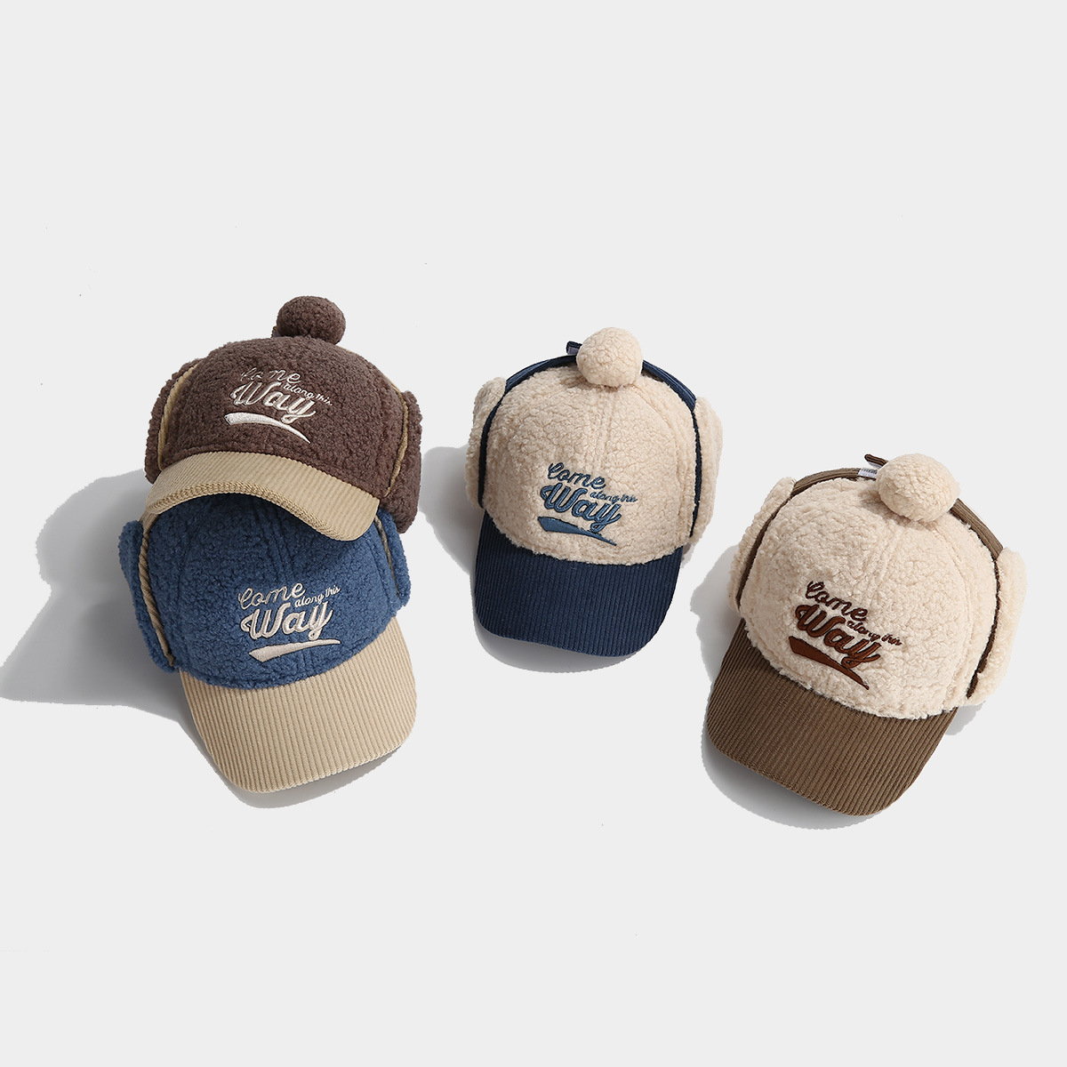 Way刺繍アルファベット子供帽子冬耳保護子供アヒル舌帽子子供保温中大童雷鋒帽子