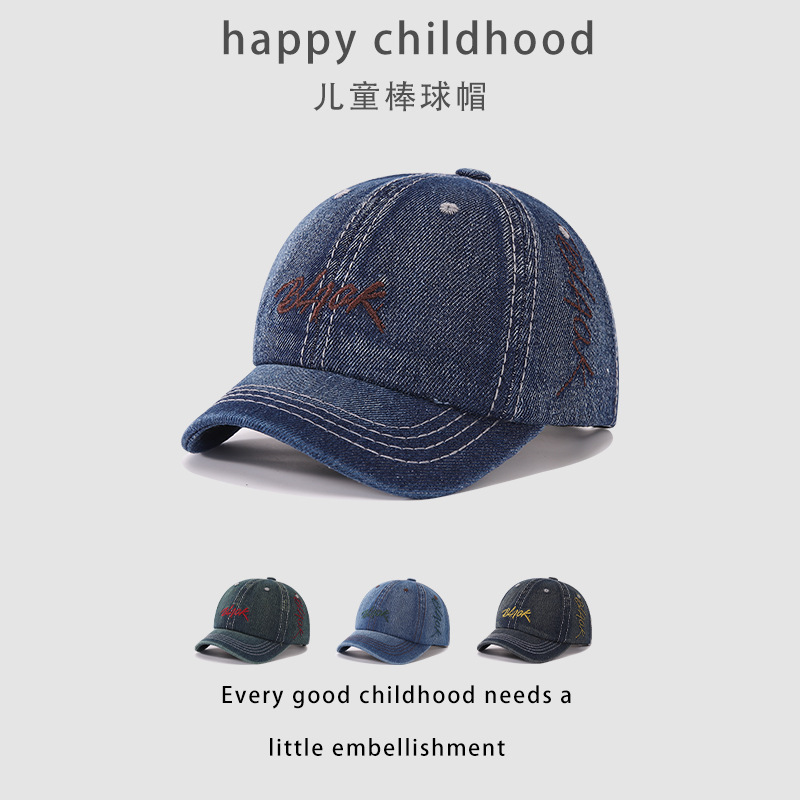 本恵の赤ちゃんの地の主な帽子のデニムの洋気のアルファベットの刺繍の凹形のモデルの子供の個性の潮は子供の瓜の皮の帽子に乗ります。