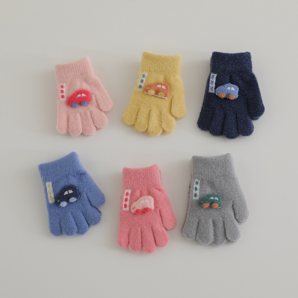 小型自動車アニメ冬子供保温手袋防寒男女宝韓版かわいい子供ニット五本指手袋