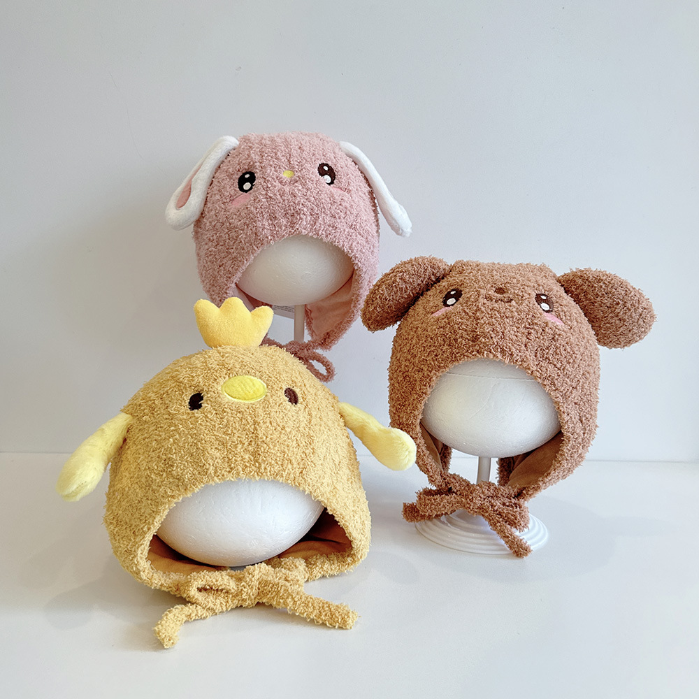 動物の形の子供のニットの帽子秋の冬のぬいぐるみの赤ちゃんのニットの帽子の綿の中で保温して耳の毛糸の帽子を保護します。
