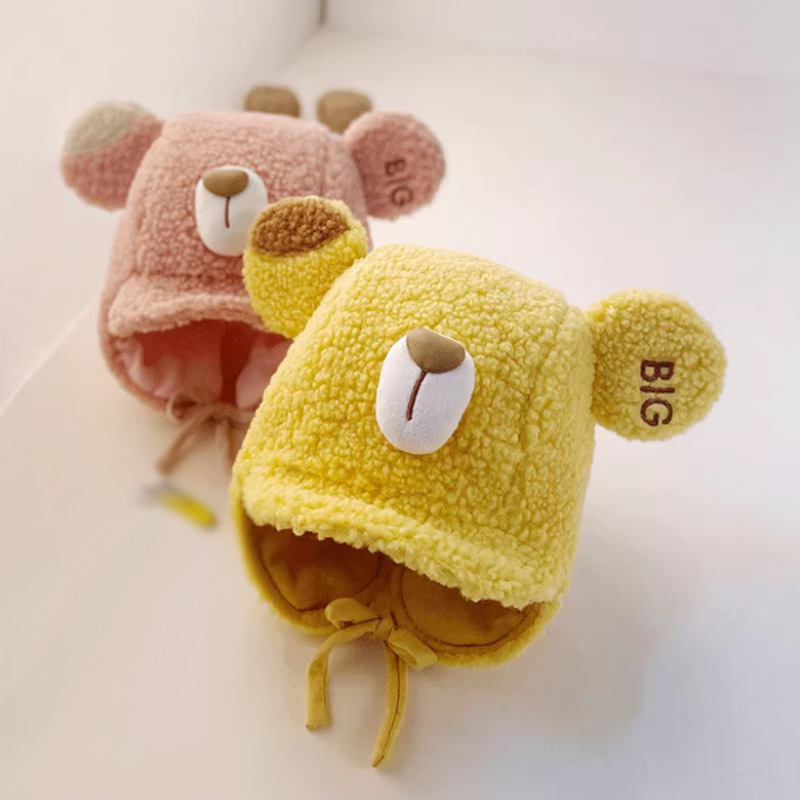 Lucky熊赤ちゃん帽子マフラー一体2点セット秋冬男女赤ちゃん冬保温ぬいぐるみ帽子