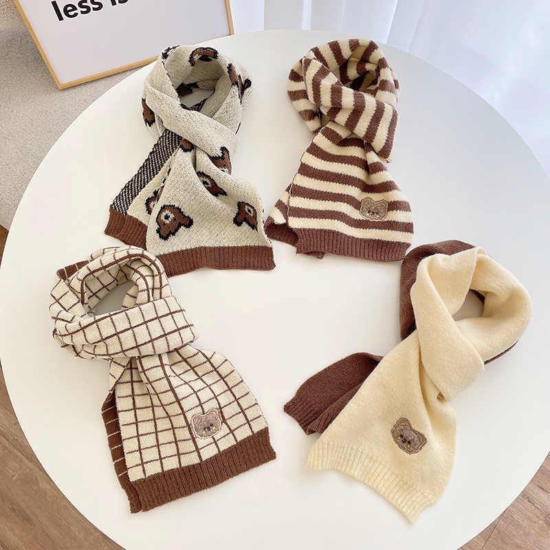 熊の子供のマフラー秋冬のニットのマフラーの男女の赤ちゃんの韓国系のレジャーの保温の子供の毛糸のマフラー
