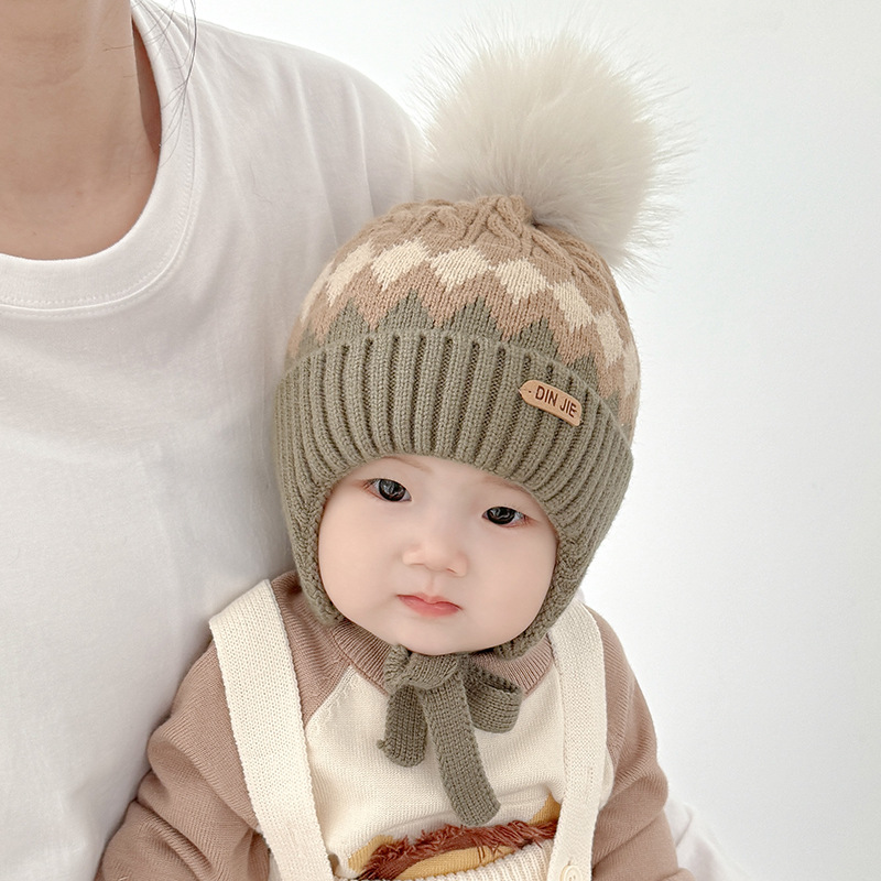 赤ちゃんの帽子秋冬のファッション毛玉の耳保護ニット帽冬の男の子の女の子は保温毛糸帽を厚くします。