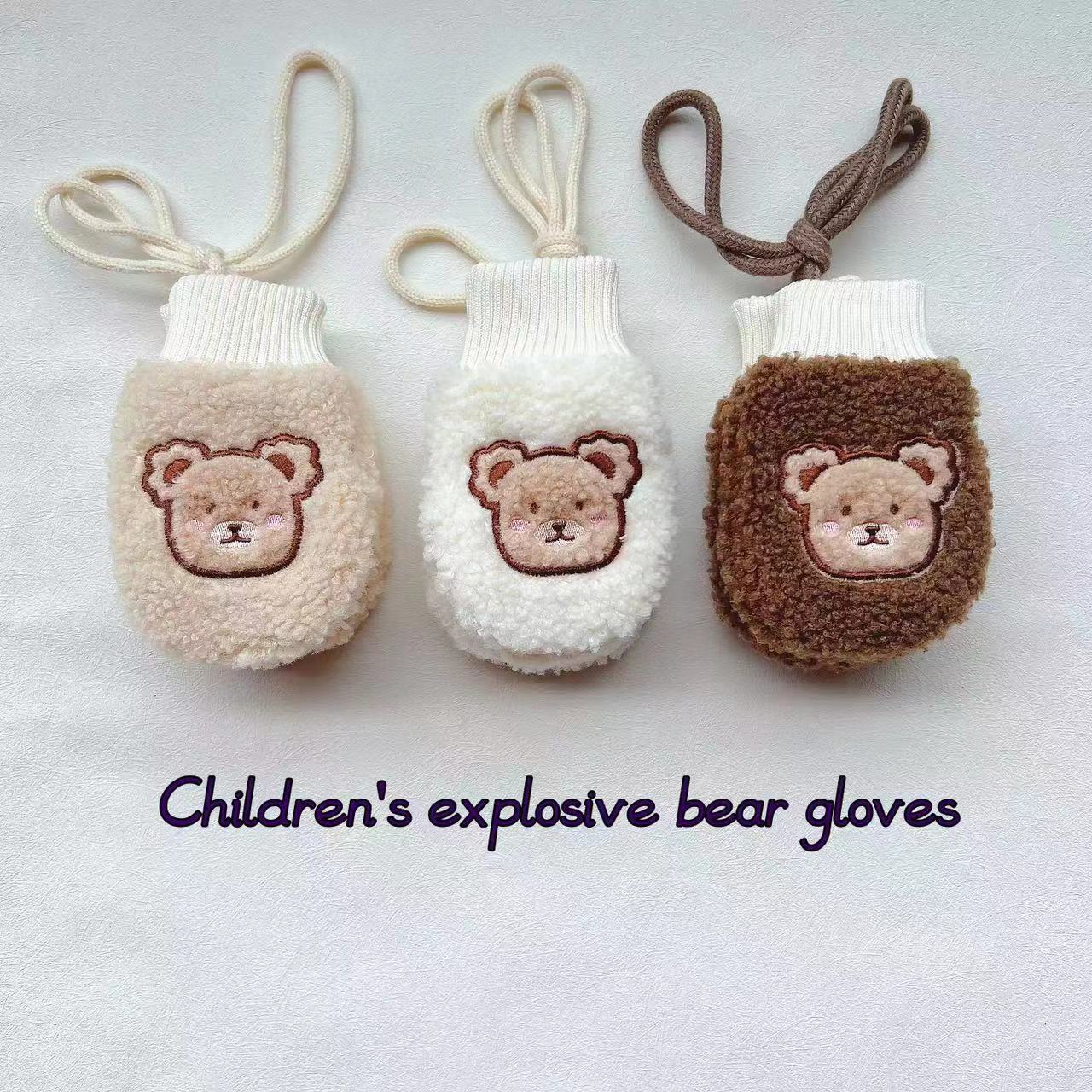 新しい子供のニットの毛糸の手袋の冬の保温の韓国版の熊の男女の赤ちゃんは子供を指して手袋を指します。