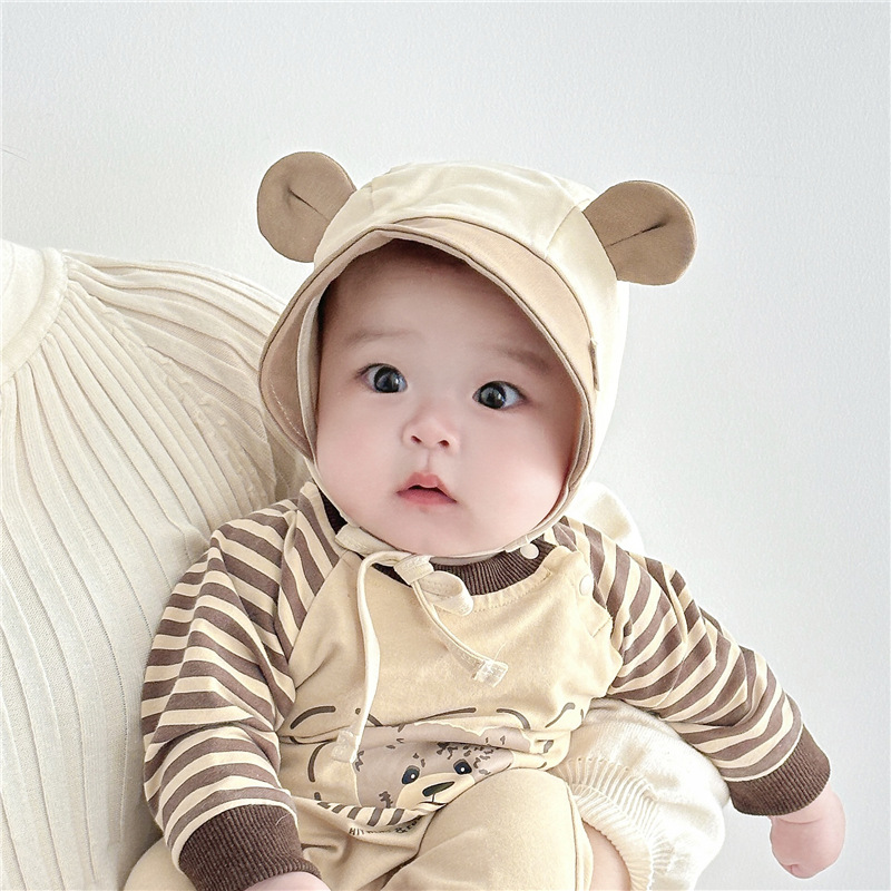 本恵双球鴨舌耳保護帽ベビー帽子薄いかわいい超萌えバッグ顔帽小月齢純綿童帽