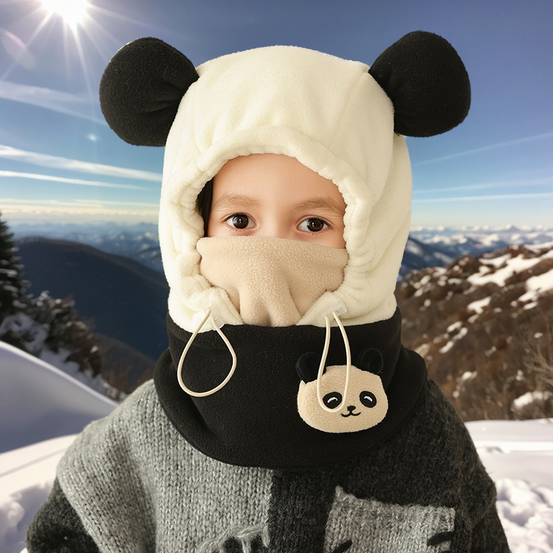 子供の帽子の秋冬の頭の男の子の女の子の保温の帽子は色の漫画の耳の保護の首のワンピースの帽子にぶつかります。