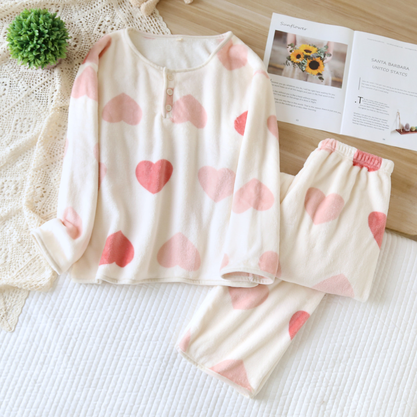 秋冬長袖厚手保温フランネルレディースパジャマ学生可愛い女性冬用コーラルベルベットホームウェア