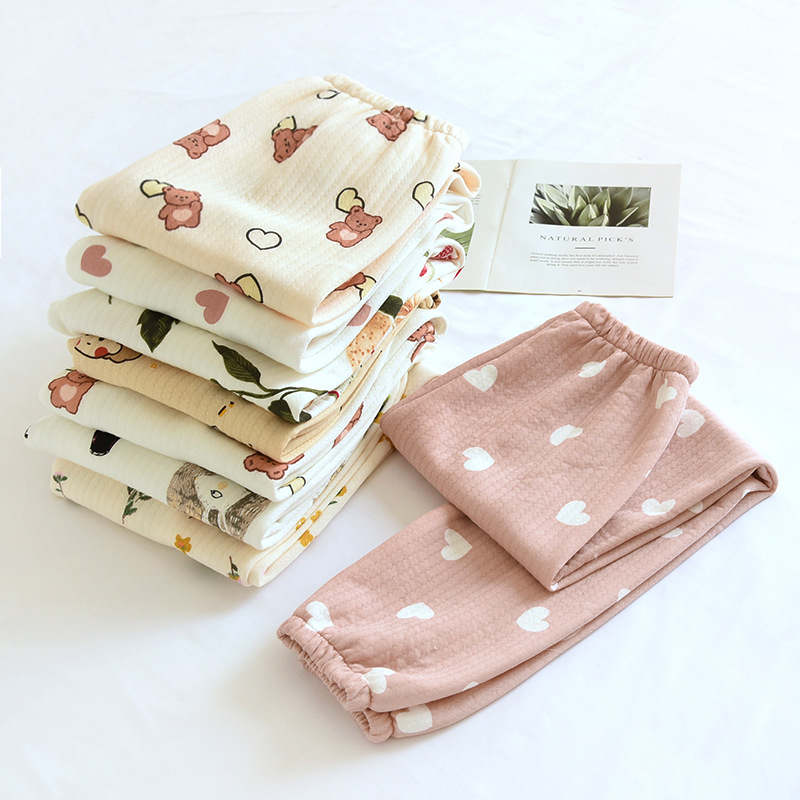 ちりめんプリントパジャマレディース春と秋の夏の純綿ガーゼ二重の薄いタイプのゆったりしたストラップのズボンの家のズボンの夏