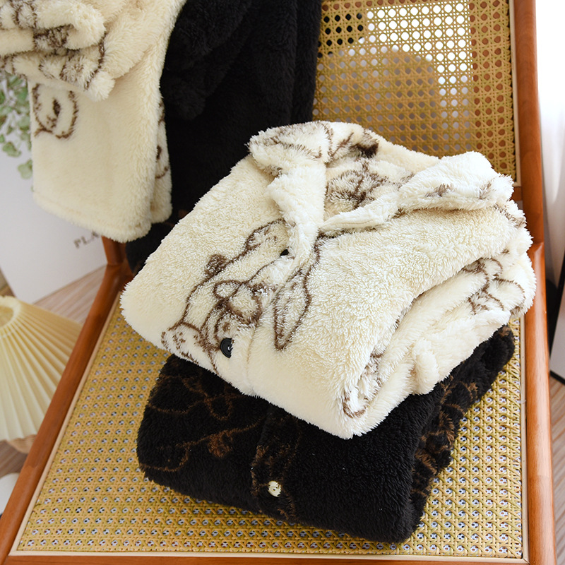 カップルパジャマ冬のサンゴのベルベットはかわいいぬいぐるみ秋冬男性の家庭服女性2023年の新製品を厚くした