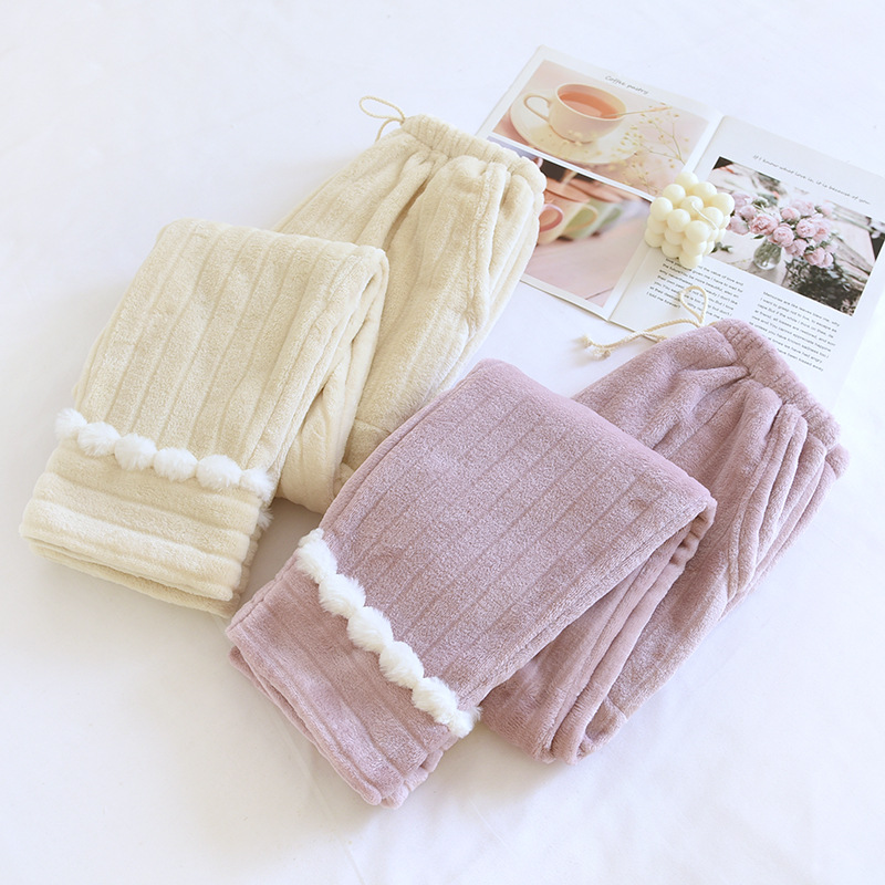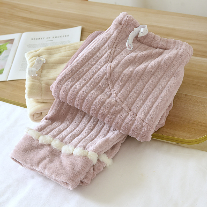 フランネルの寝ズボンの女性2024秋冬の新しいズボンにベルベットの厚い家のズボンのサンゴのベルベットは寝ズボンを着ることができる