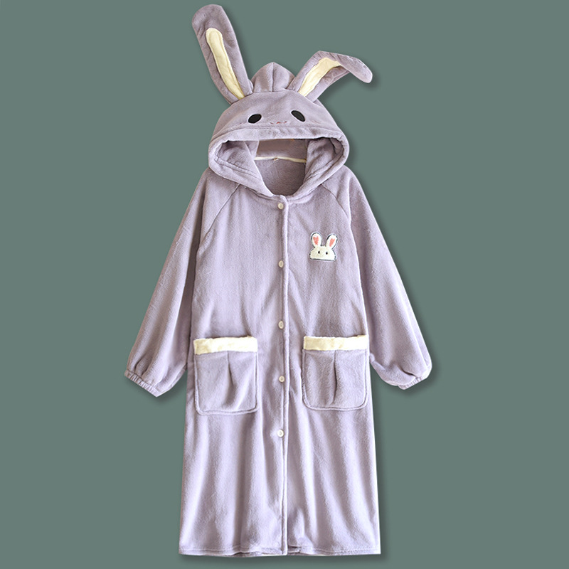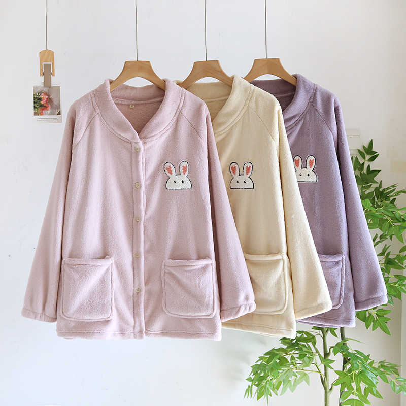 ウサギのパジャマの上着の女性は冬にフランネルの保温とベルベットのサンゴのベルベットを厚くして、カジュアルな厚手の家庭服をシンプルにします