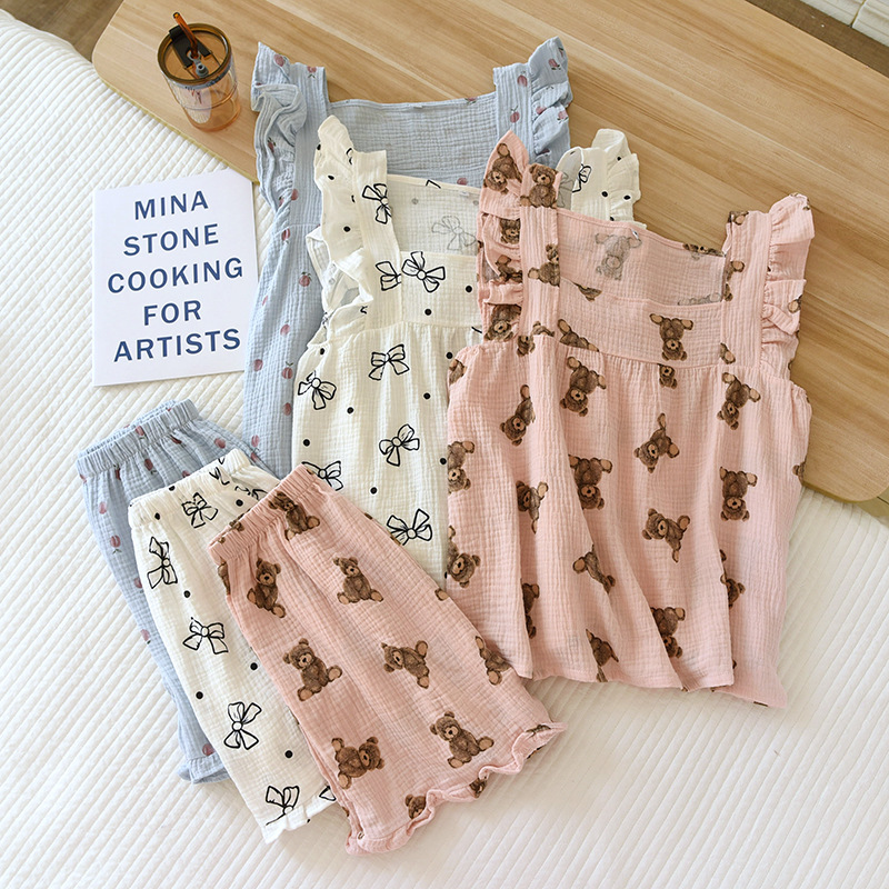 胸パッド付きの甘い純綿ガーゼパジャマ