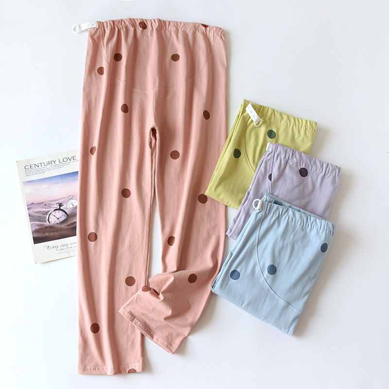 丸い点の妊婦の睡眠のズボンの純綿の春と秋のズボンのゆったりしている大きいサイズは月子の産後の家庭のズボンを調節することができます。