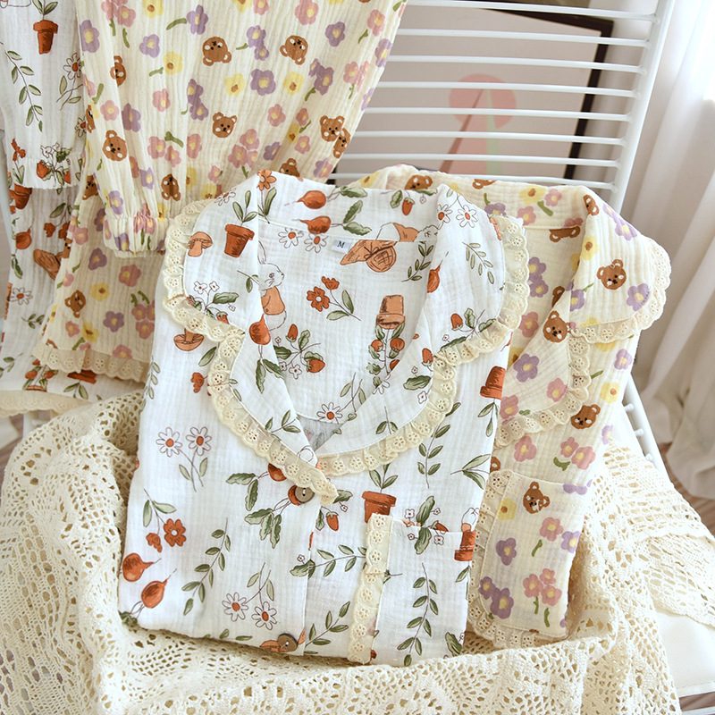 『野花熊熊』甘美な雰囲気感チューリップ純綿ガーゼパジャマ