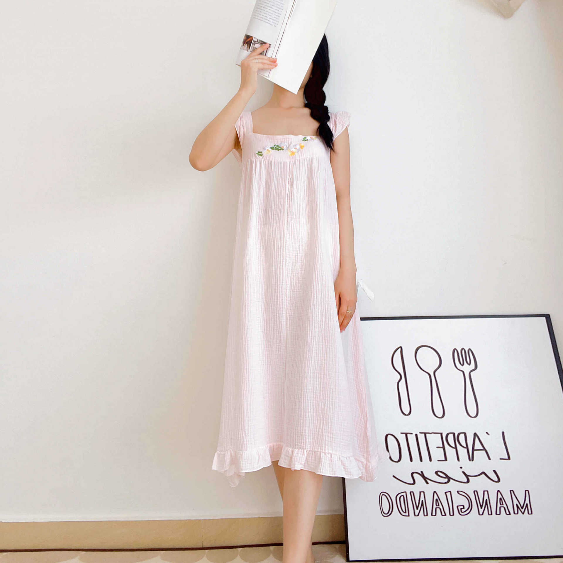 韓国版キャミソールのパジャマスカート女性の中長タイプの夏の純綿の甘いお姫様風の薄いタイプの可愛いパジャマルームウェア