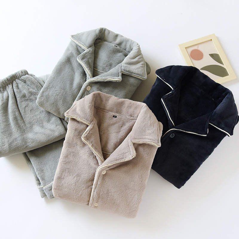 フランネルパジャマ男性秋冬カーディガン保温冬ベルベット男性ホームウェアセット