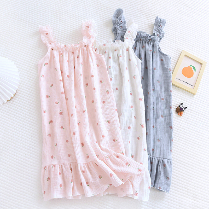 2022年春夏のパジャマ女性綿の大きいサイズの甘いかわいい袖なしの新しい薄い綿糸夏のストラップの寝スカート
