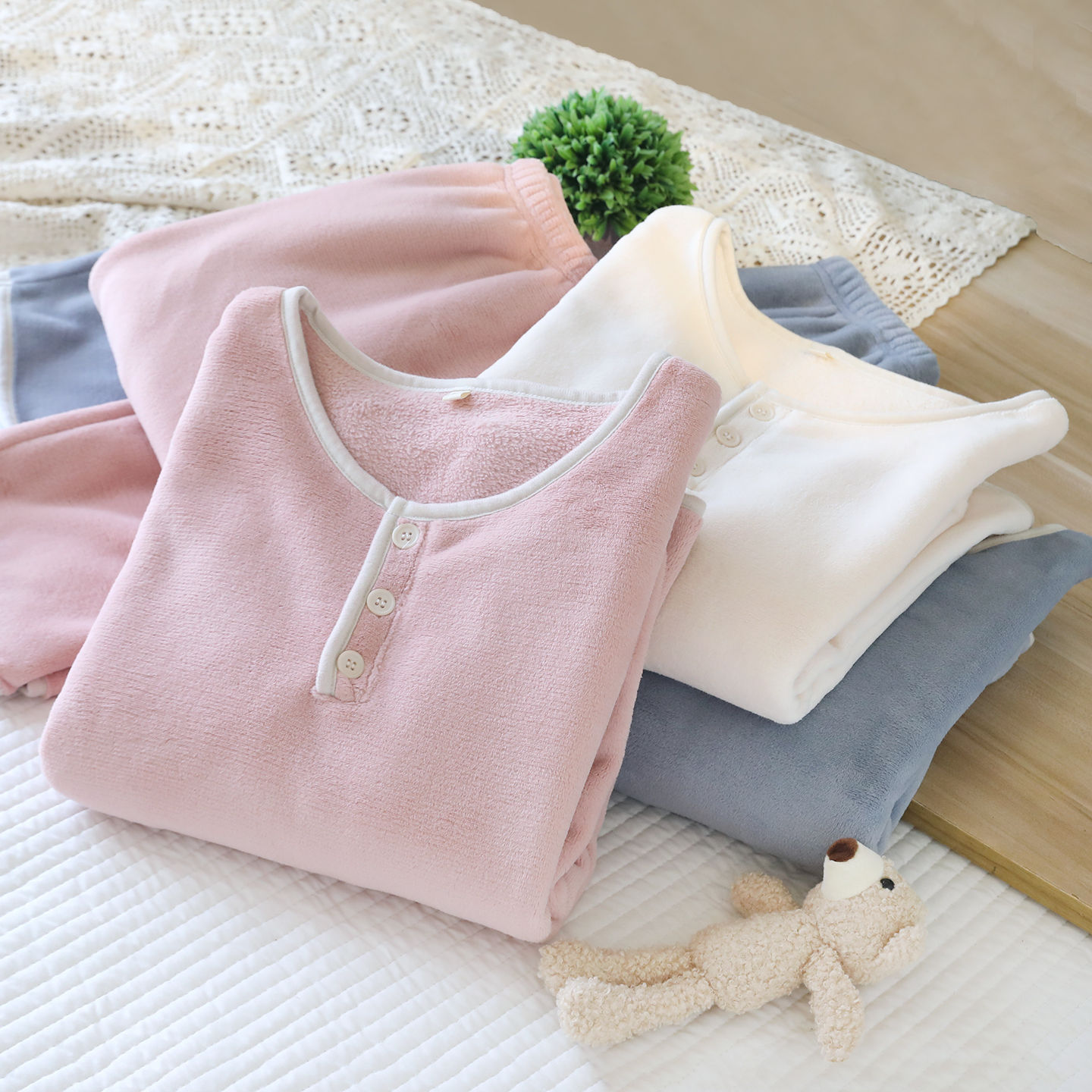 女性用パジャマ秋と冬コーラルベルベットプラスベルベット厚みのあるフランネルレディーススーツホーム服ラウンドネック無地セット