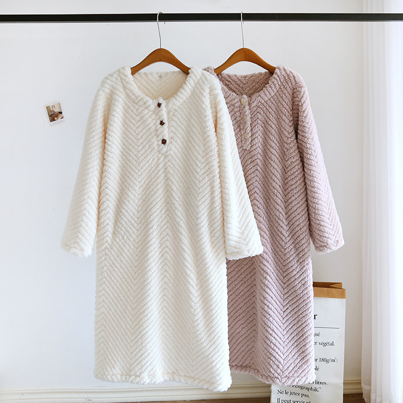 簡単なパジャマの女性のパジャマのバスローブ秋冬の冬の長いフランネルの厚いベルベットの冬