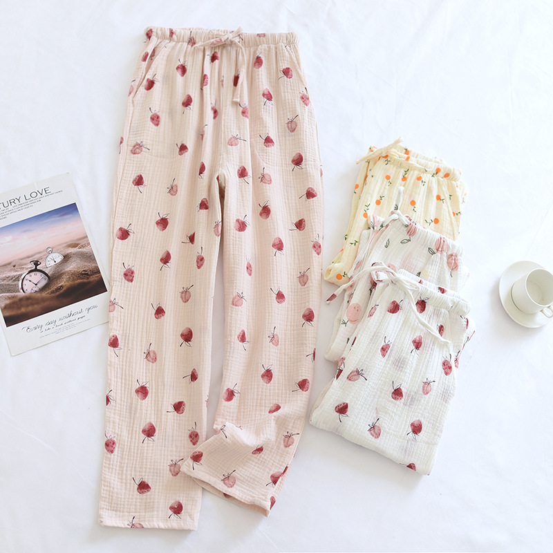 春夏の秋の新型クレープの女性の長ズボンの綿のガーゼの家のズボンの純綿のカジュアルでシンプルな女性の睡眠のズボン
