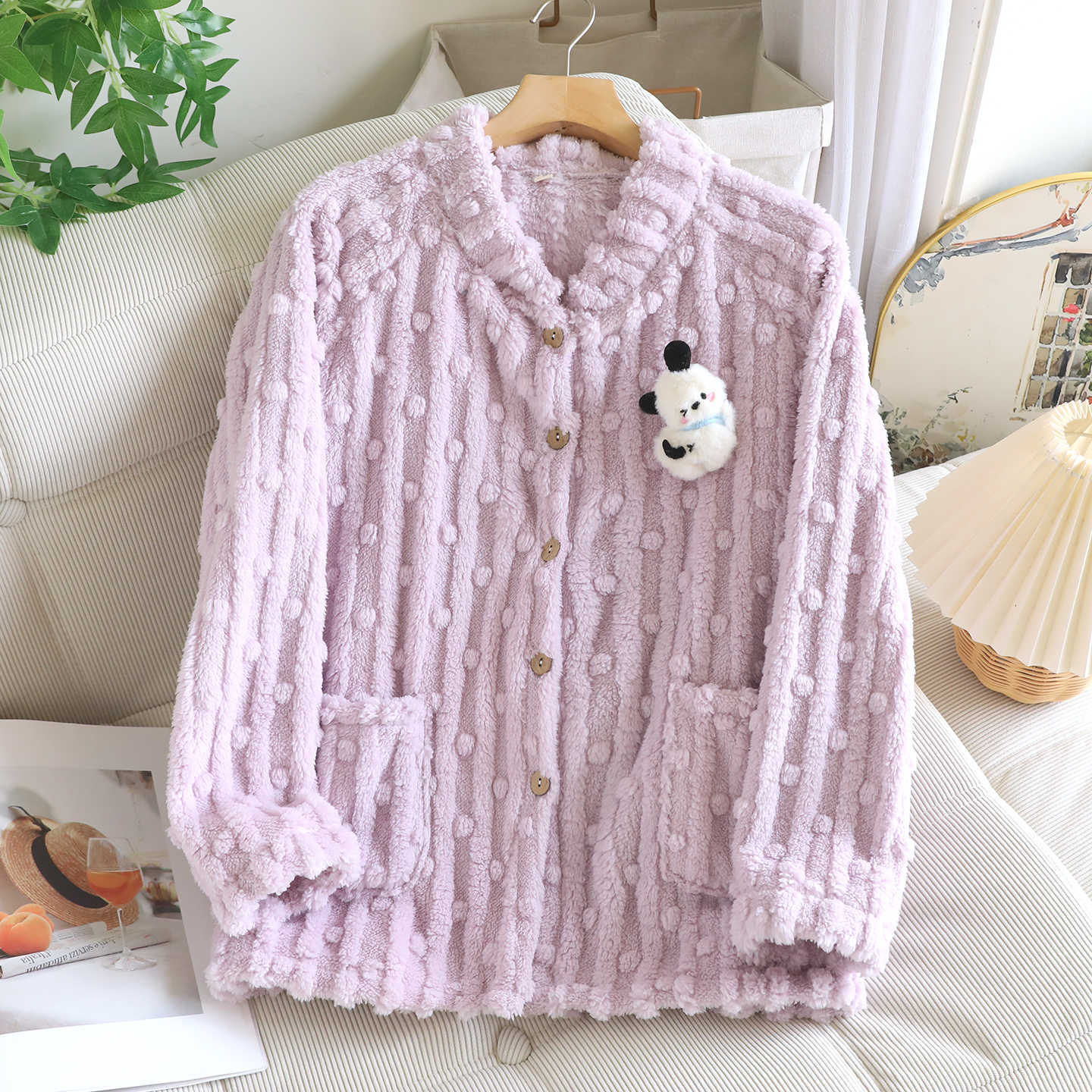 秋冬パジャマ一枚一枚上着女性フランネル冬に保温ベルベットのカーディガンを厚くして家で着ることができる