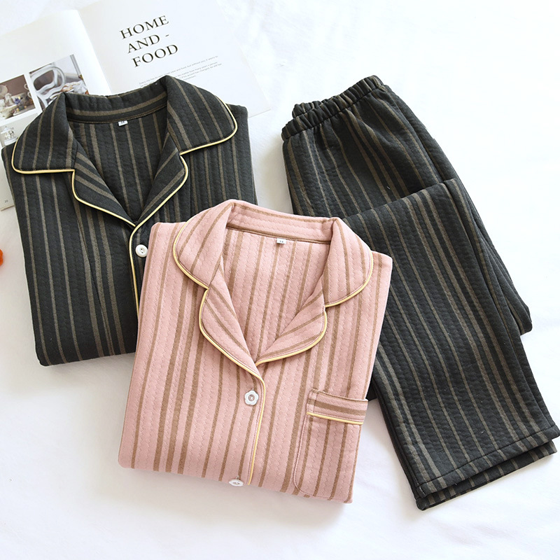 秋冬パジャマパジャマカップルパジャマ女性長袖日系空気層綿入りホームウェア2点セット