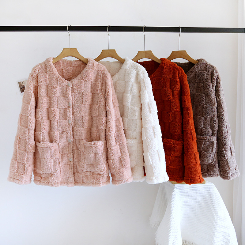 2024年新作秋冬古風パジャマ女性冬毛羽立ちコーラルパイル厚手フード付きアウターホームウェアスーツ