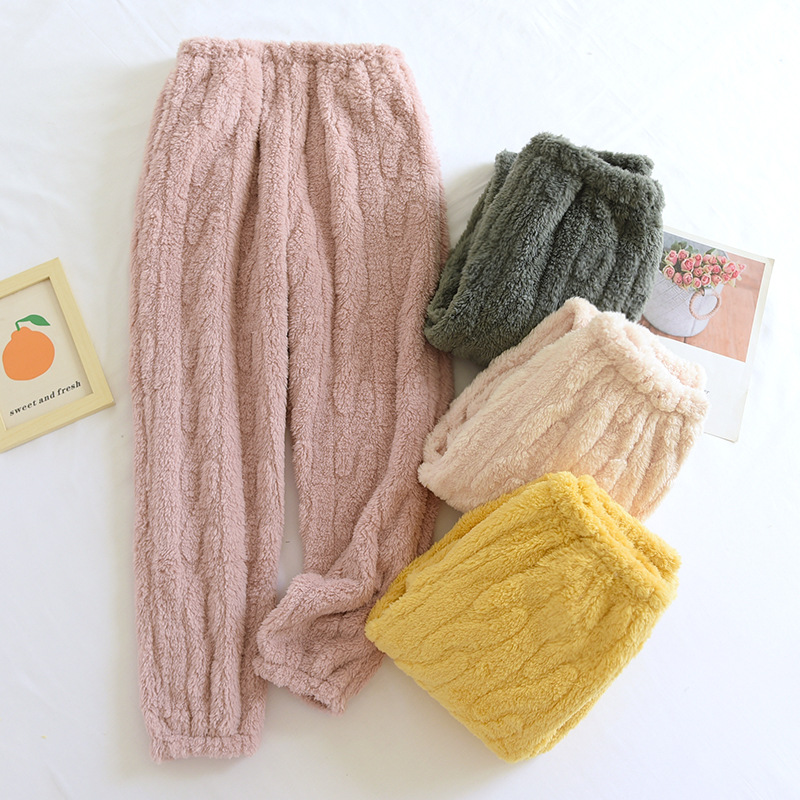 寝ているズボンの女性の秋冬の珊瑚の絨毛のズボンのフランネルの暖かいズボンのゆったりしている大きいサイズの厚いズボンの純色は外に着ることができます。
