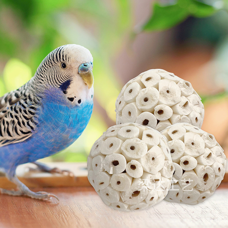 天然通草球オウム虎皮玄鳳はボールをかじって歯ぎしりをします。