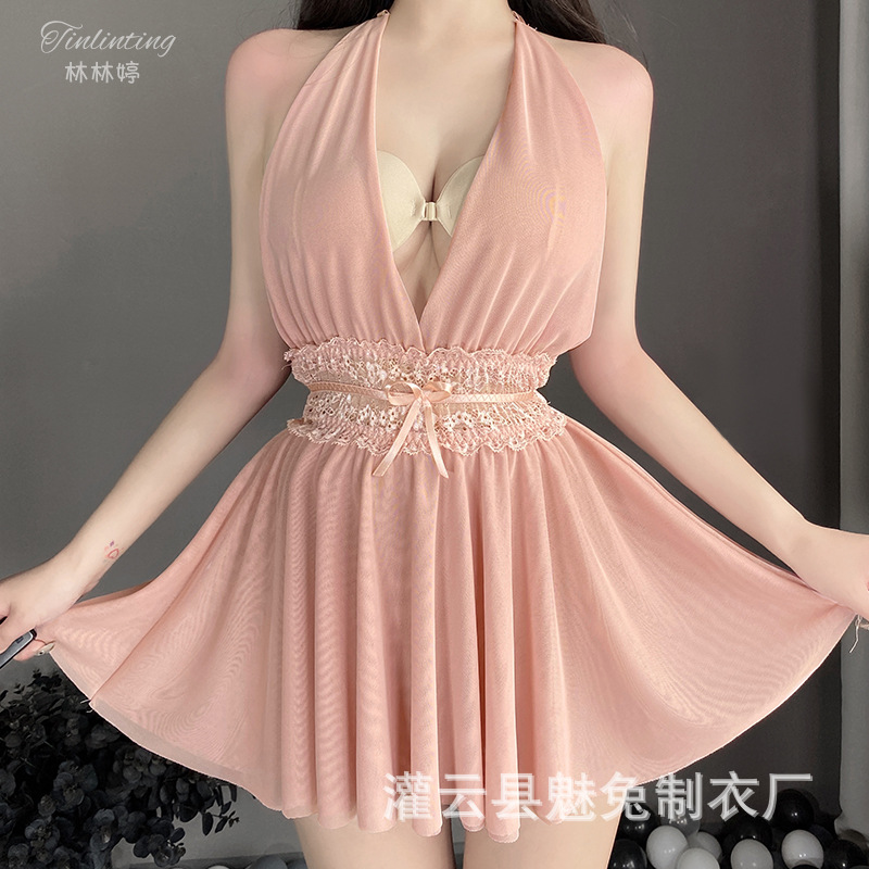 ストラップの寝ているスカートの女性の夏の氷の糸のセクシーな集まっているパジャマの私の部屋のレースの熱い誘惑の純粋な欲望の下着の薄い金の1026