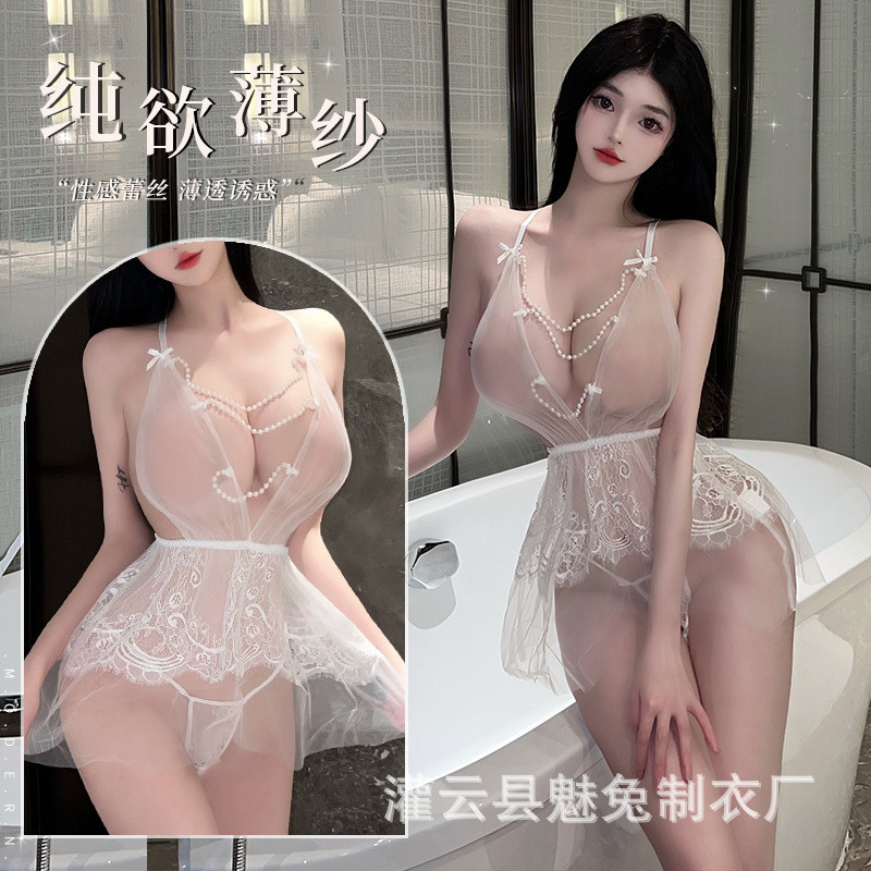魅力的なウサギのセクシーな趣味の下着の女性の胸の純粋な欲の小さい胸はネットの紗の眠るスカートを誘惑します。