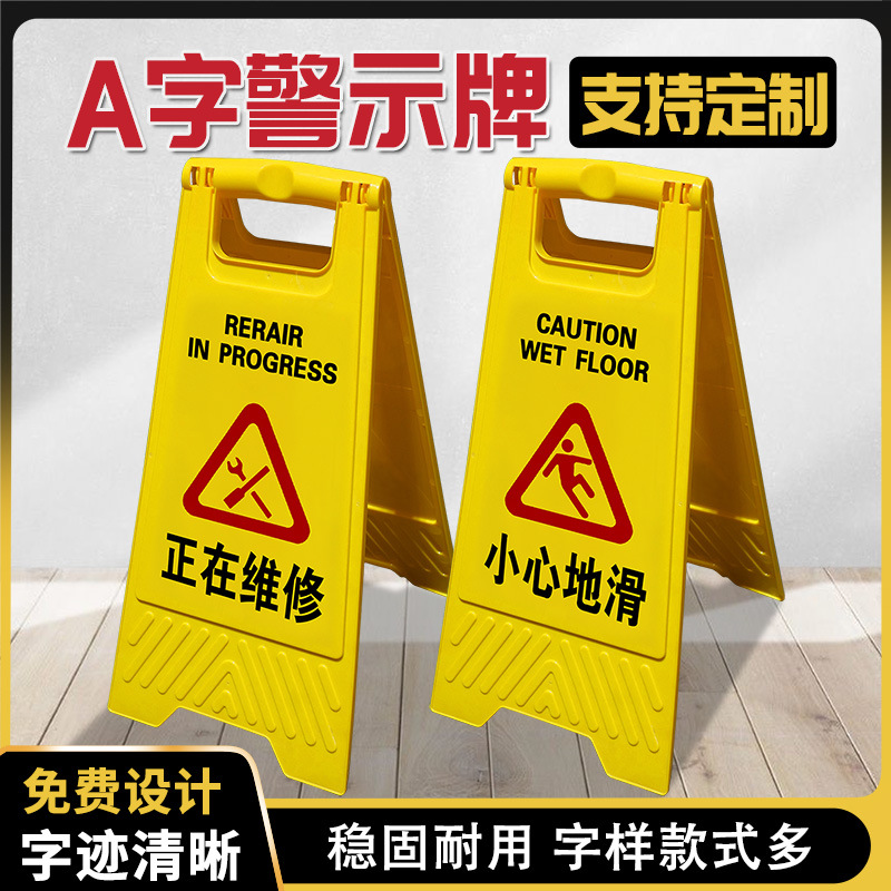 気をつけて滑る提示札a字警告札は縦型滑り止め掲示板の印字掲示A字札を施工している