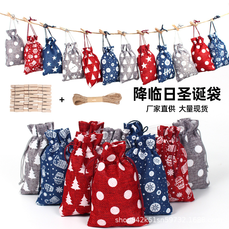 クリスマス降临カレンダー麻布袋祝日プレゼントクリスマスセット包装袋漫画巾着袋