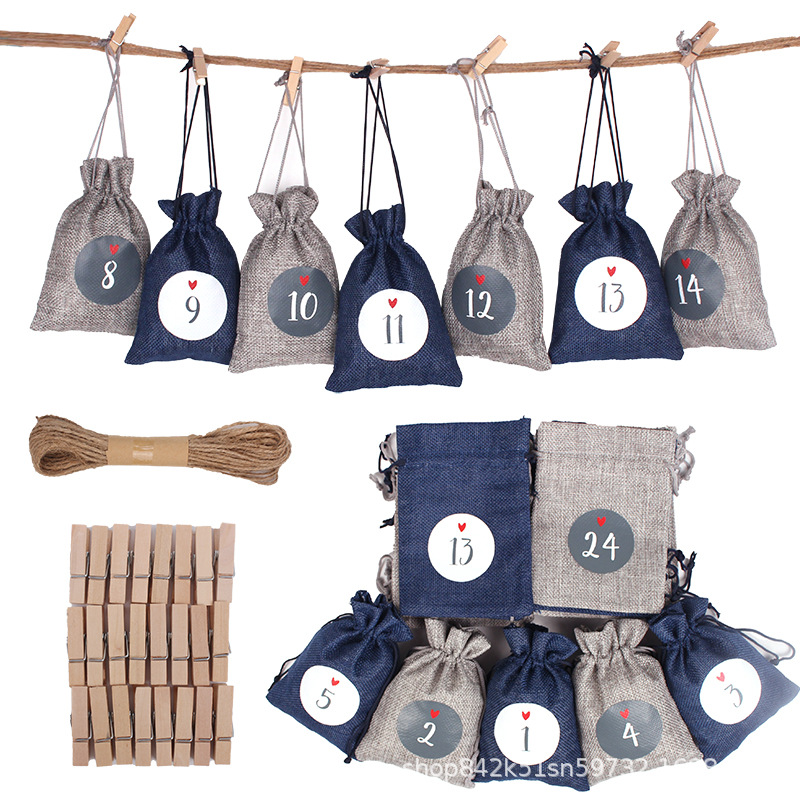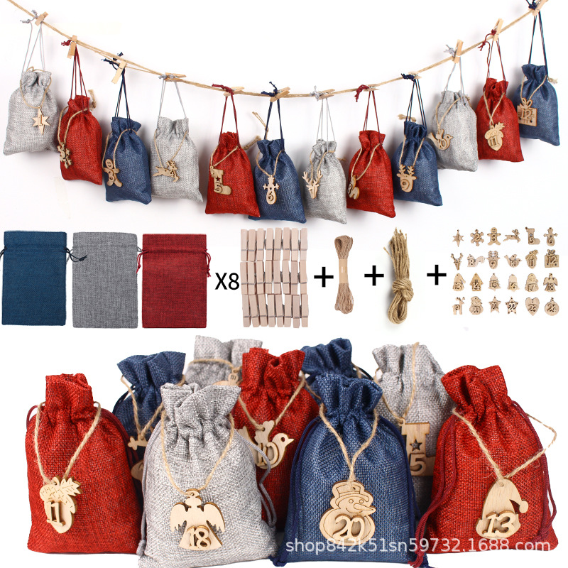 新品クリスマスギフトバッグ24デジタル麻袋セットクリスマス降临カレンダー木札収纳袋
