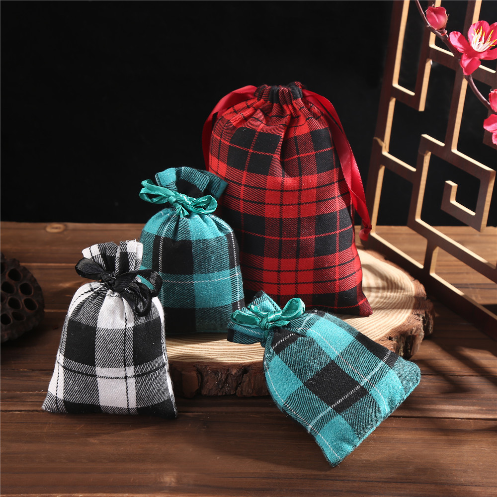 新しいクリスマスの綿の布のポケットのキャンディーの収納袋のクリスマスの贈り物の袋のセットのクリスマスの格子の綿のプレゼントの袋