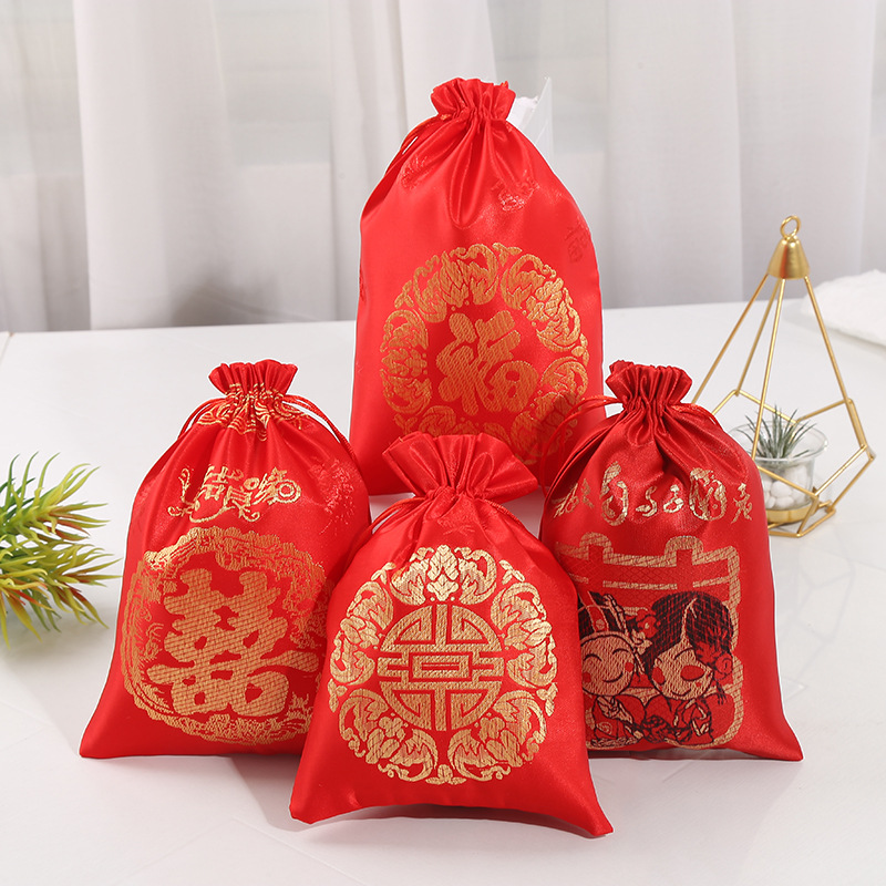 ダブルロープ束口福袋工場現物錦織福字袋旧正月紅包お年玉収納結婚ギフトバッグ