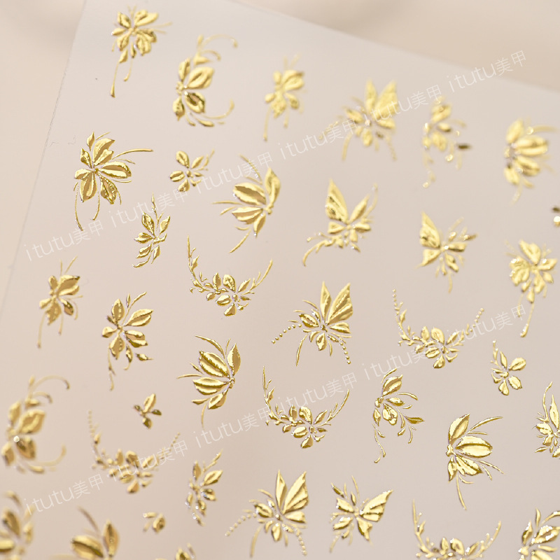 Itutu新型箔押し浮き彫りネイルステッカー金属蝶花レトロ金色小模様YG-163