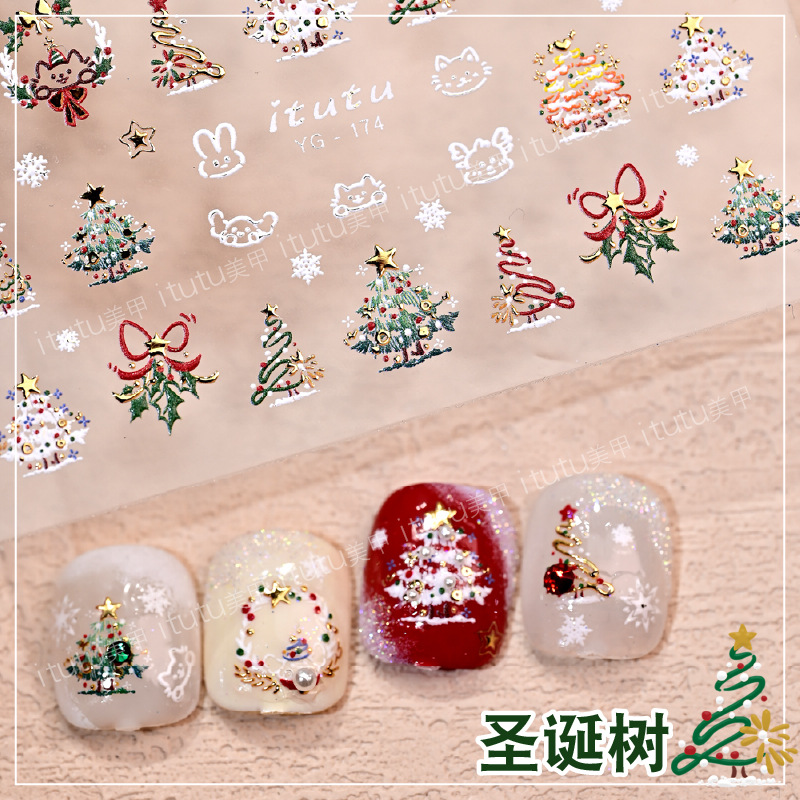 Itutu新型クリスマスツリー箔押しネイルシールクリスマスベアー浮き彫り雪クリスマス要素バックテープ174