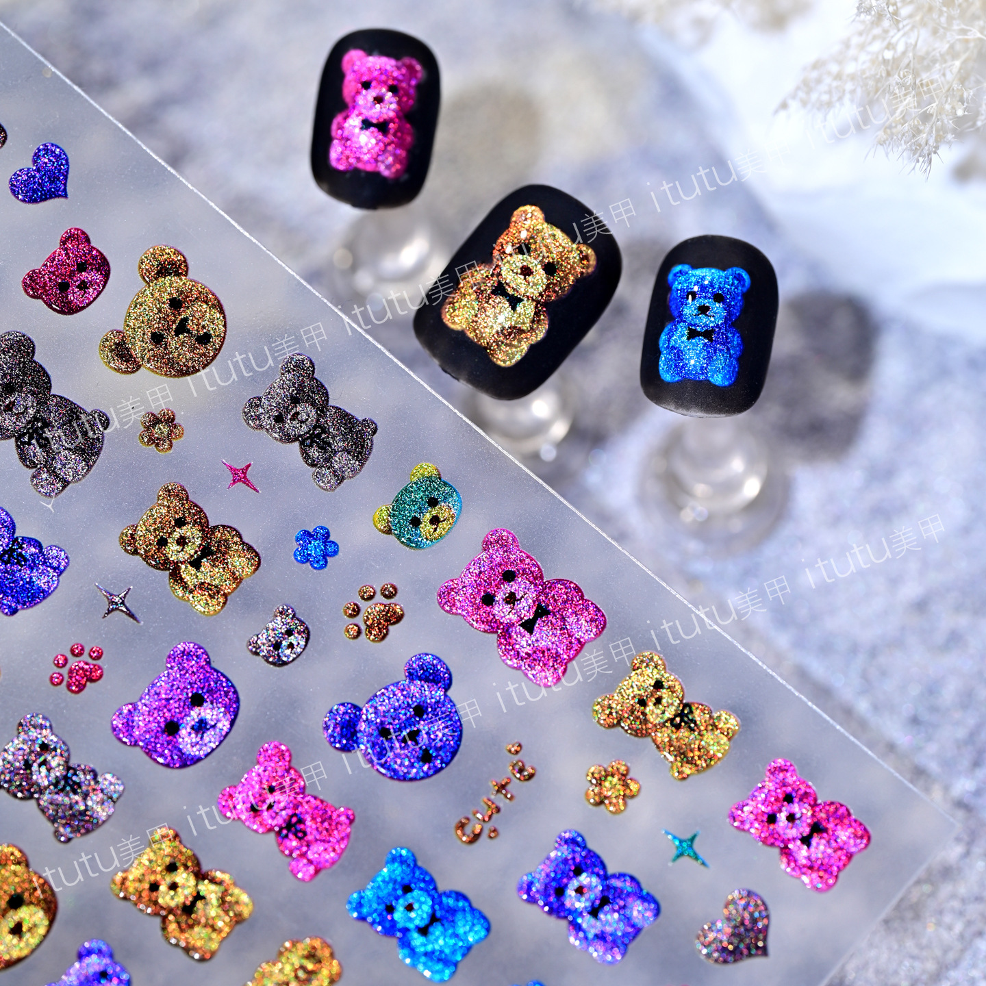 itutu キャットアイベアネイルアートステッカー新しいかわいいフラッシュベアネイルパターン粘着ステッカー 376