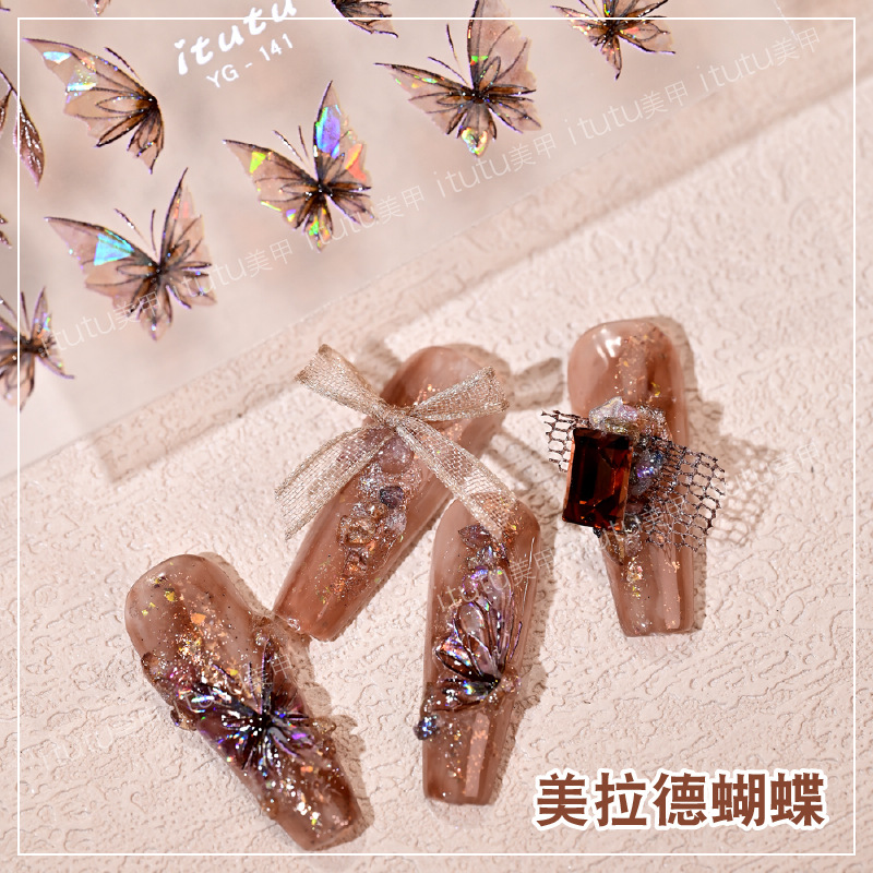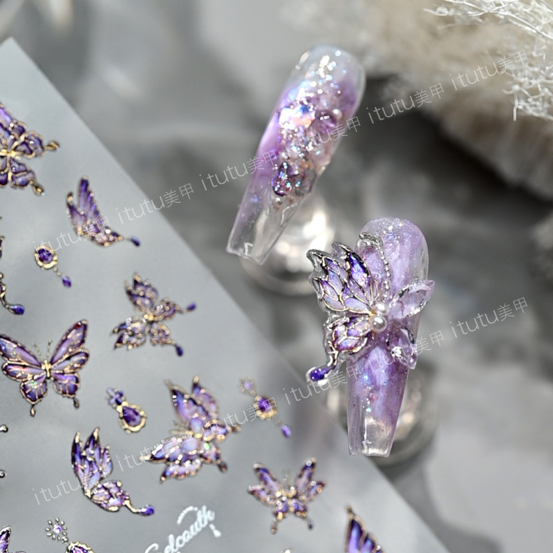 Itutu瑠光晶蝶新商品九紫離火蝶立体レリーフ貝殻光箔押しネイルシール329
