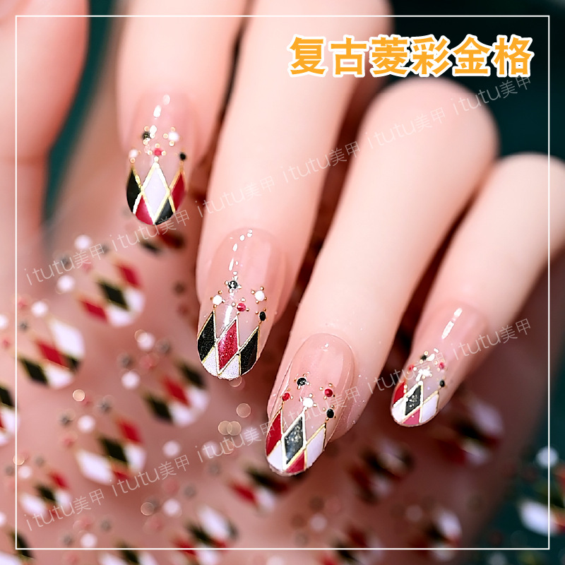 Itutu新型レトロ菱彩金格箔押しネイルシールカラーバロックレトロ菱格フランス271