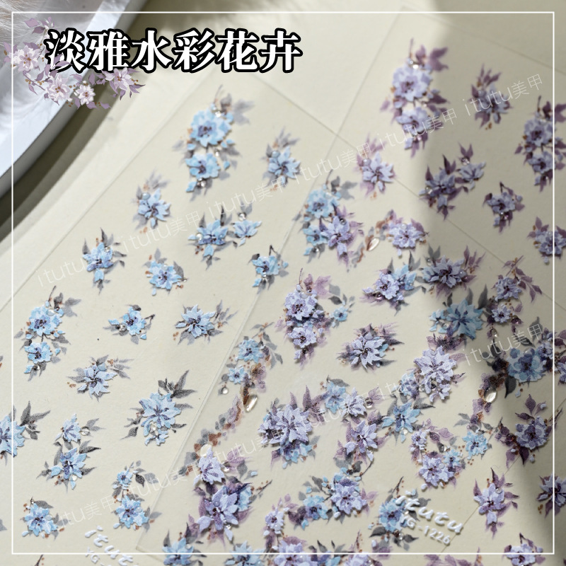Itutu新作あっさりした水彩花のレリーフネイルステッカー