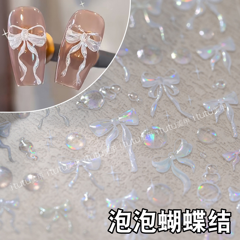 蝶結びの泡の貝殻の光のネイルシールの夏の透明な夢の泡の水玉の爪の装飾のゴムの図案