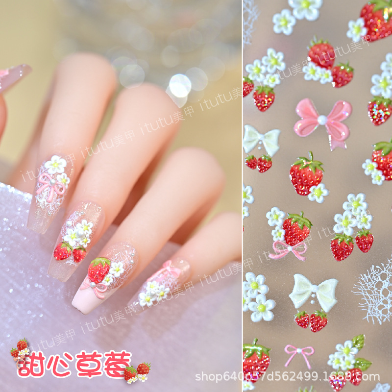 Itutu新作ハニーイチゴ立体レリーフ貝殻光ネイルシール蝶結び白花五弁花347