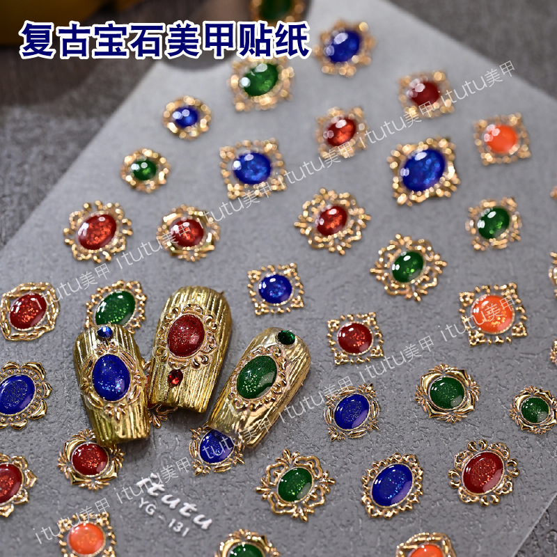レトロ珠光宝気モザイクカラー宝石箔押し辺立体レリーフシール5D高級バックゴムネイルシール