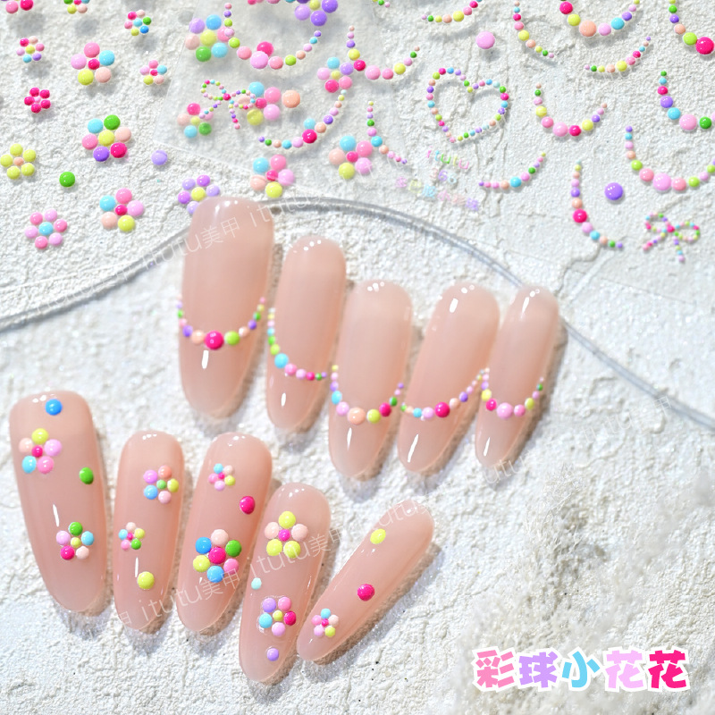 新しいカラフルな水玉模様のボールフラワーネイルアートステッカーインスタイルドーパミン立体ビーズフレンチ粘着 366
