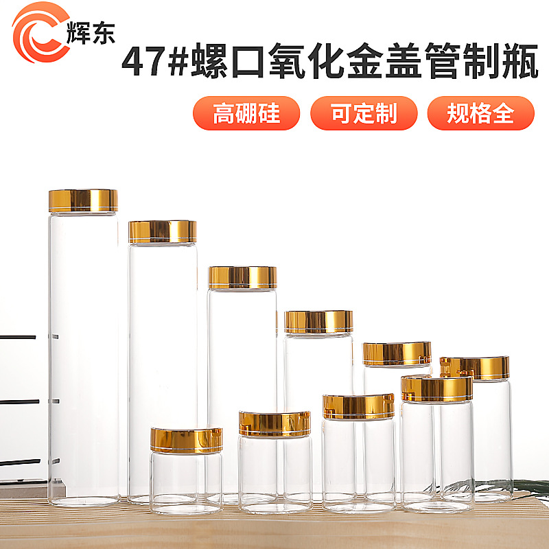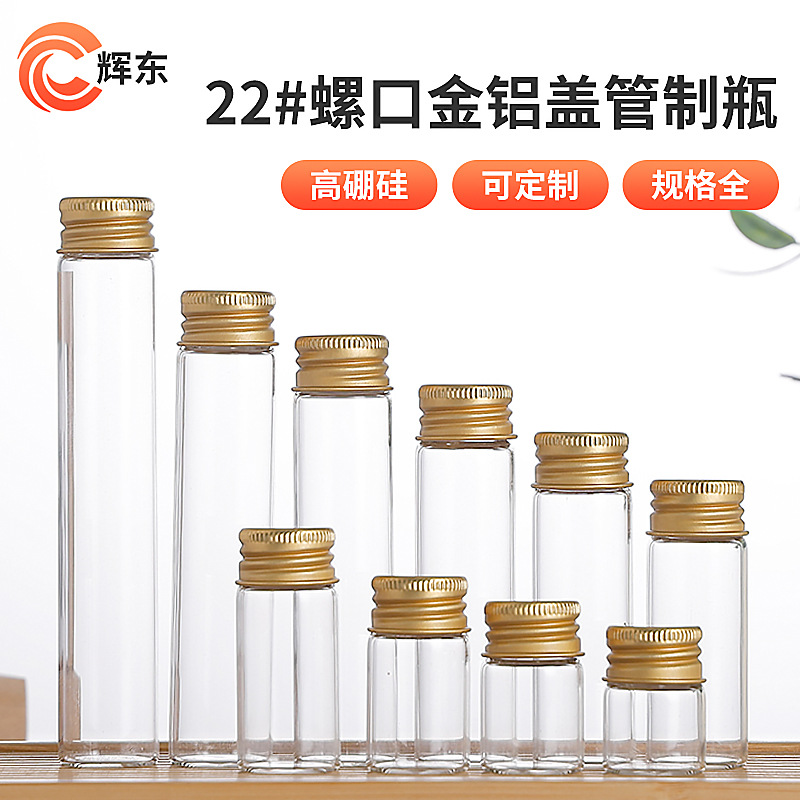 直径22mmネジ口アルミキャップ高ホウ素シリコンパイプボトル透明ガラス瓶願いボトル虫草ボトル砲流ボトル